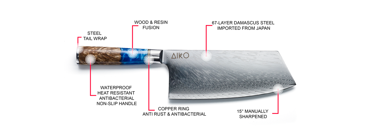- 67 Schichten Edelstahl für Festigkeit, Fleckenwiderstand und Haltbarkeit.