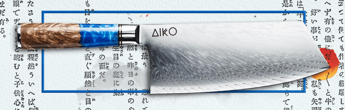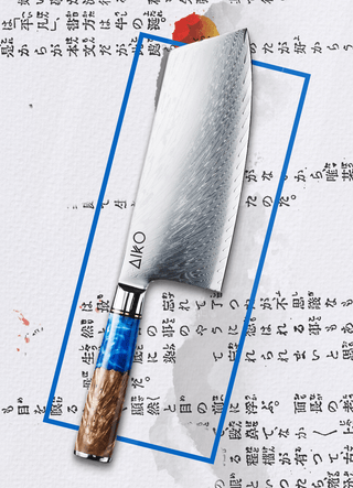Aiko Bleu (あいこ, アイコ) Damas Steel Couteau avec manche en résine bleu colorée